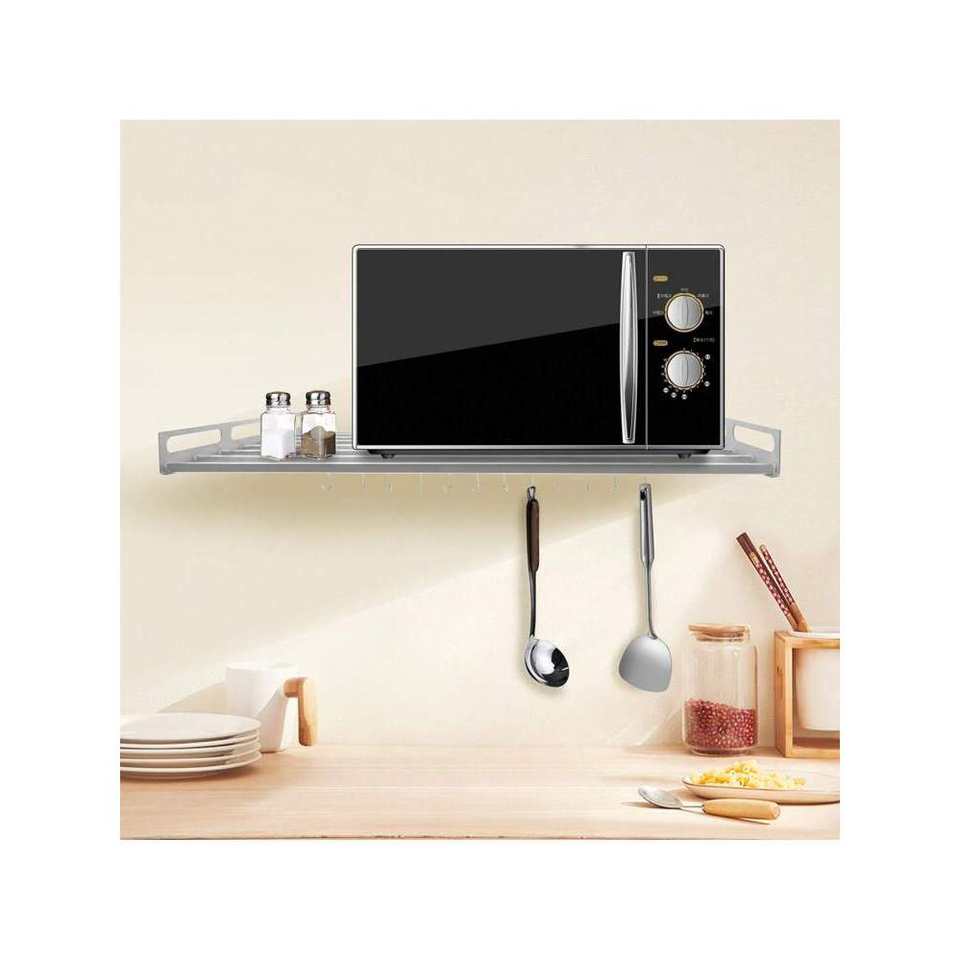 Stainless Steel Wall Mount Microwave Rack 23.63*15.7in Single Tier Kitchen Storage Rack with Hooks for Wall Oven Shelf