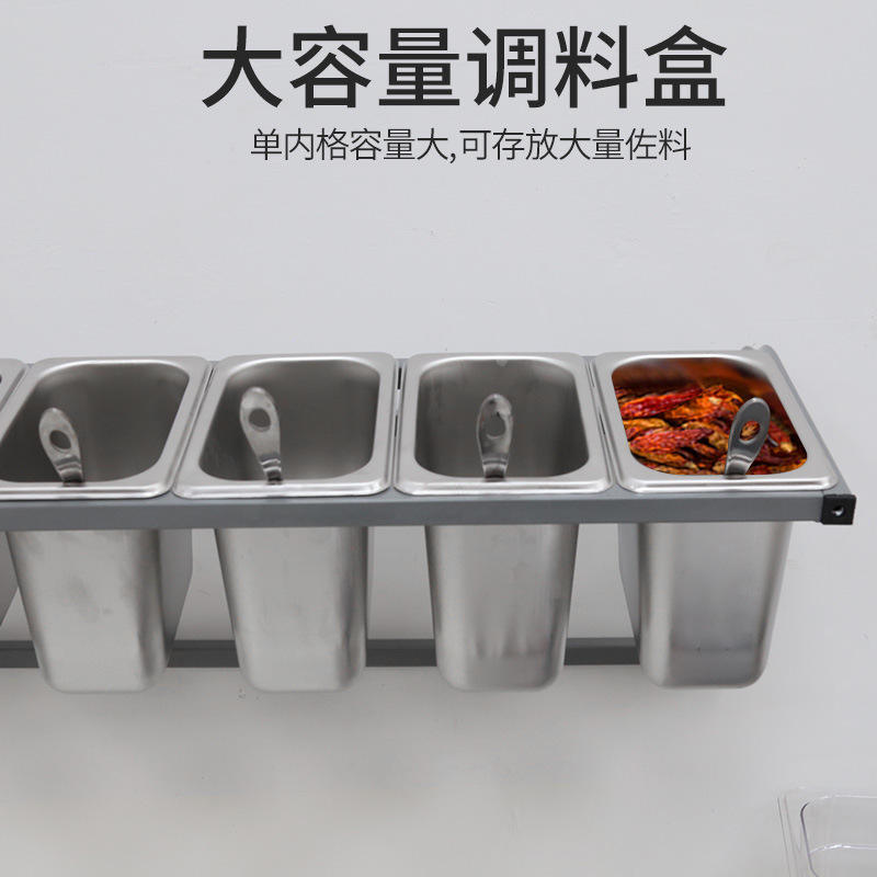Stainless Steel Wall Mounted Condiment Rack 1/9 Single Row 6 Compartment Spice Serving Bowls Kitchen Storage