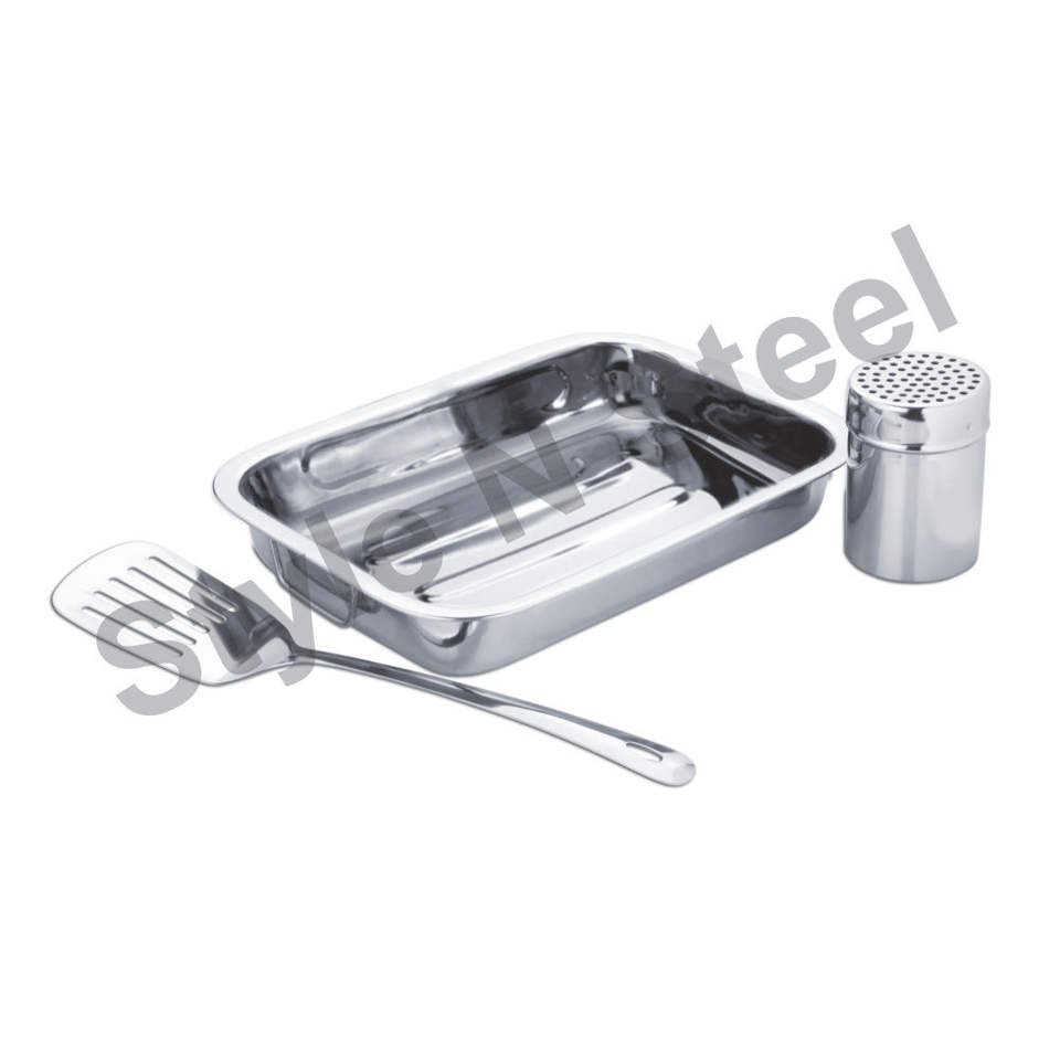 Stainless Steel Wholesale Premium Belgium Bowl in Gold Color Along With a Salad Server Set in a Salt and Pepper With Tray Spoon