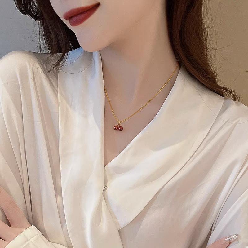 Stainless Steel Wine Red Cherry Gold Colour Luxury Pendant Necklace Unisex Personality Fashion Wedding Gift Jewelry Birthday