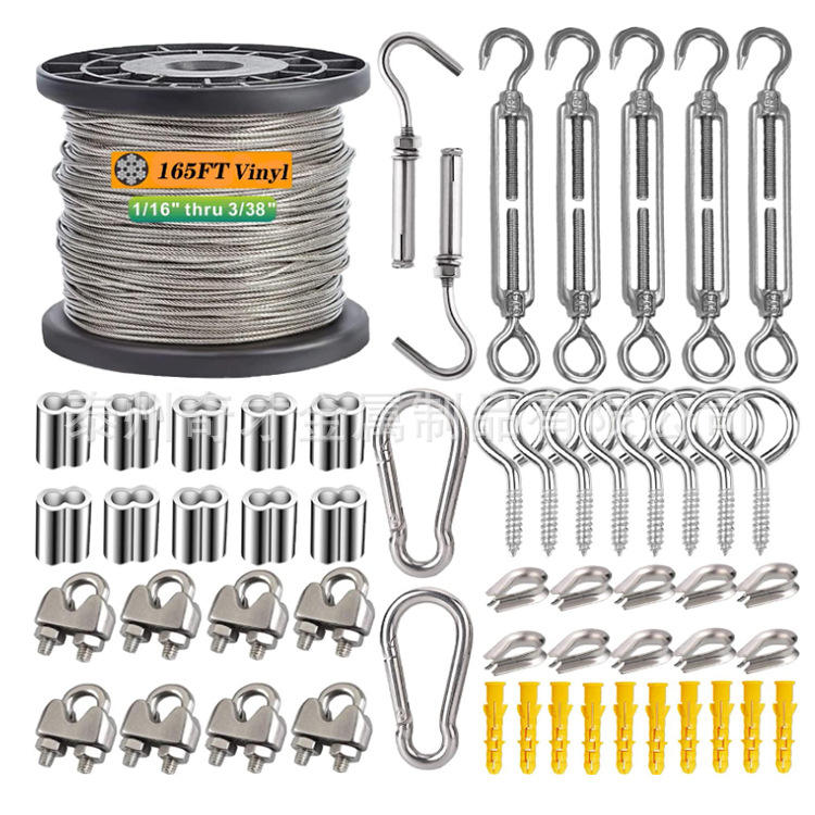 Stainless Steel Wire Rope Kit 165 Ft Vinyl Coated With Hooks And Hardware For Car Roof Rack Installation