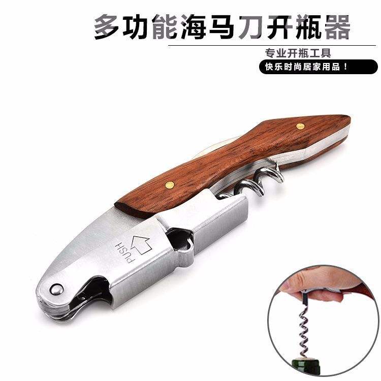 Stainless Steel Wooden Handle Corkscrew Multifunctional Portable Folding Wine Bottle Opener Classic Bar Tool XR6055