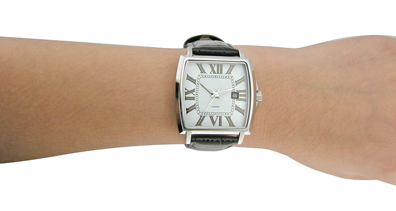 Stainless Steel case Leather Band Brand Quartz Men Watch