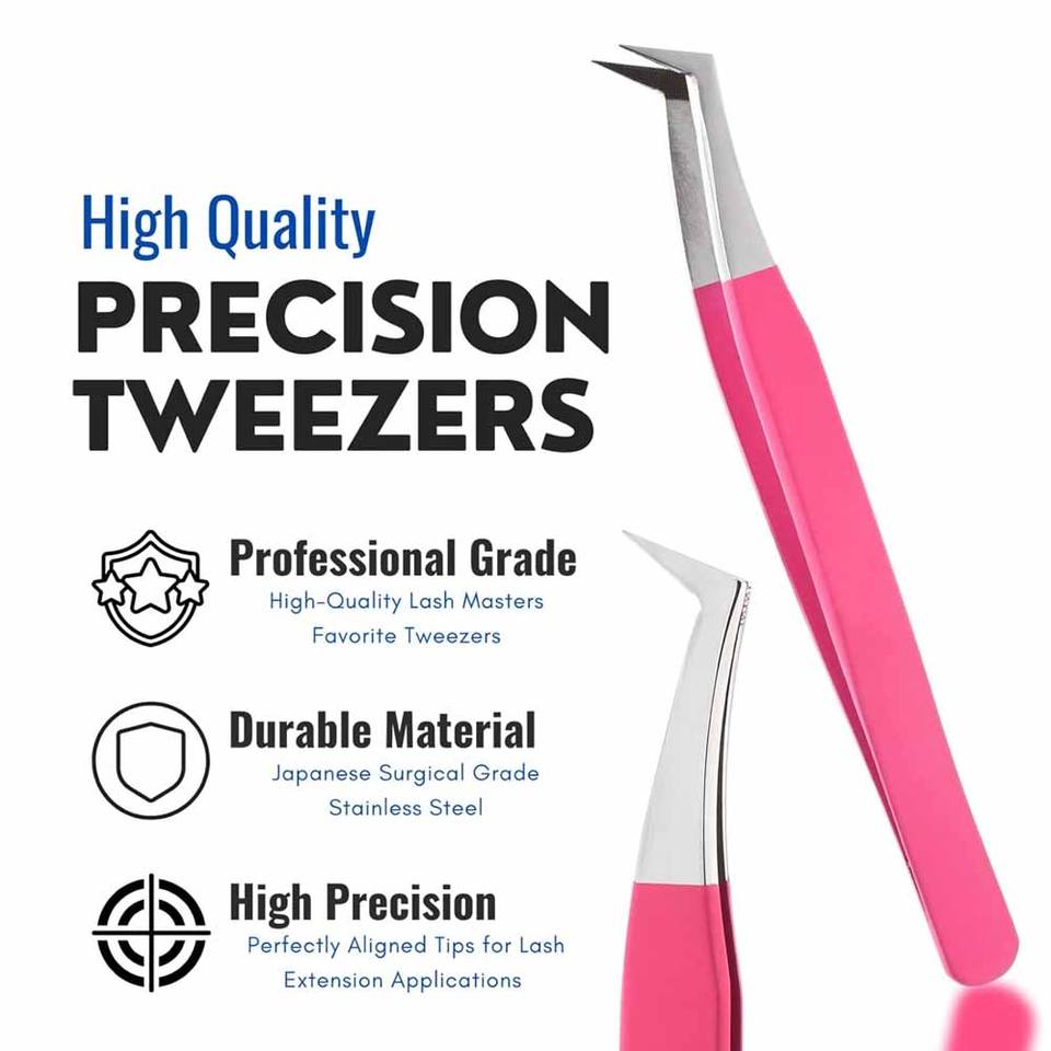 Stainless Steel eyelash tweezers custom color curved Fiber Tip beauty extension tweezers