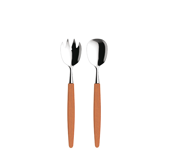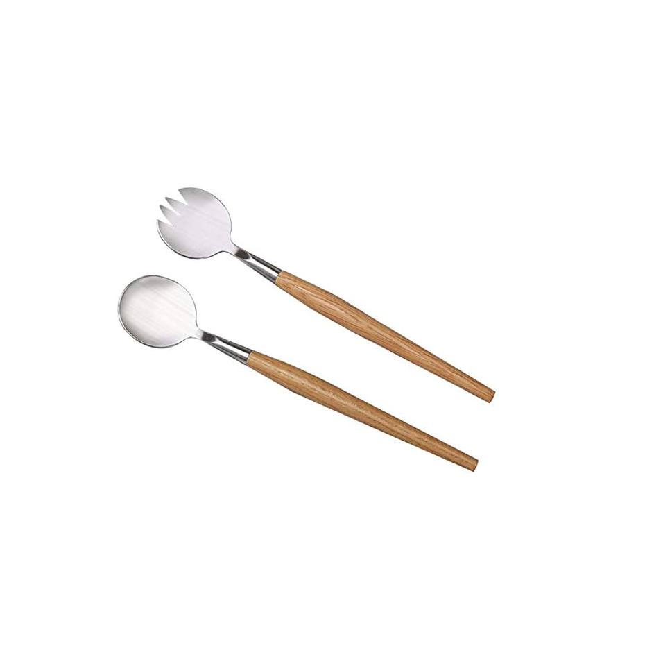 Stainless Steel Salad Spoon Gold Plated Cutlery for Wedding Flatware Set with Wood Handle