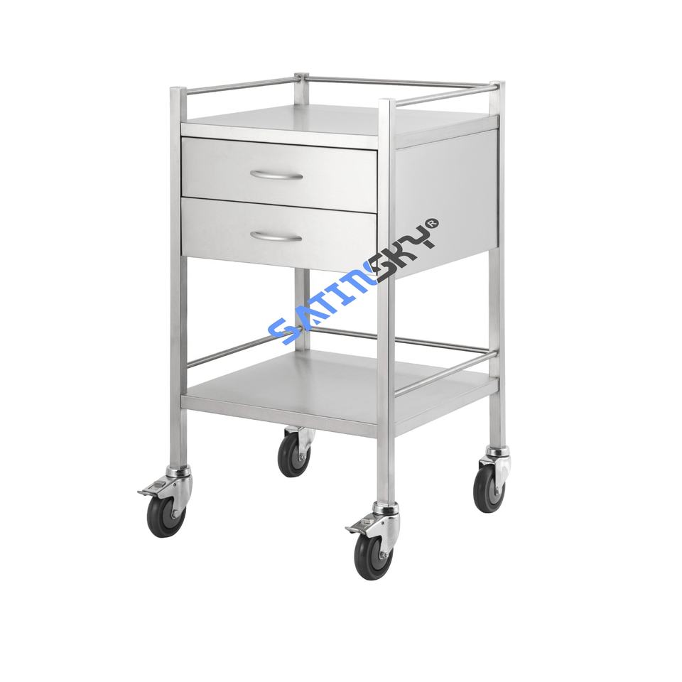 Stainless Two Drawer Trolley Manual Robust Drawers Soft Close Bearing Runners High Grade 304 Stainless Steel CE Certified