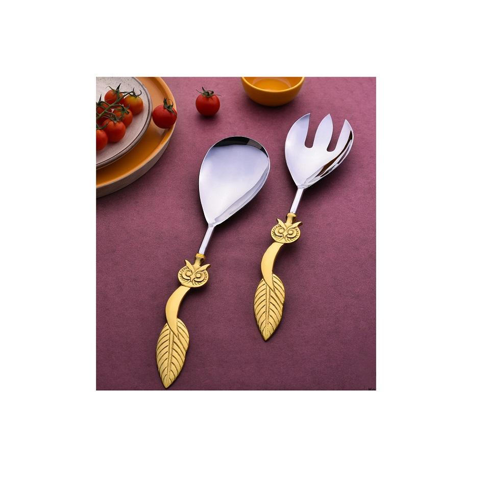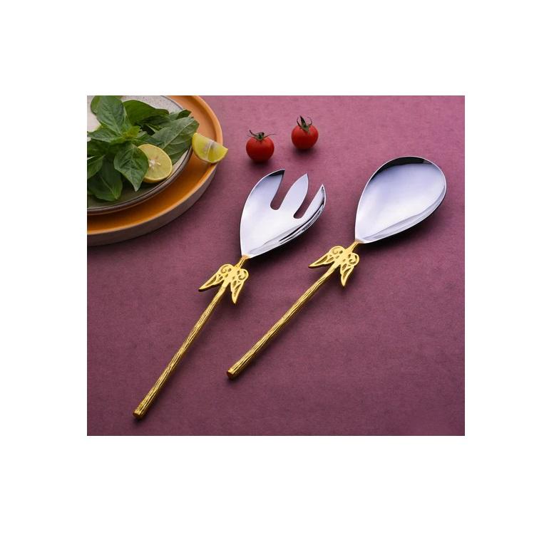 Stainless steel Salad Server with elegant crafted handles High Quality Metal salad servers rectangle Handle Salad Server set