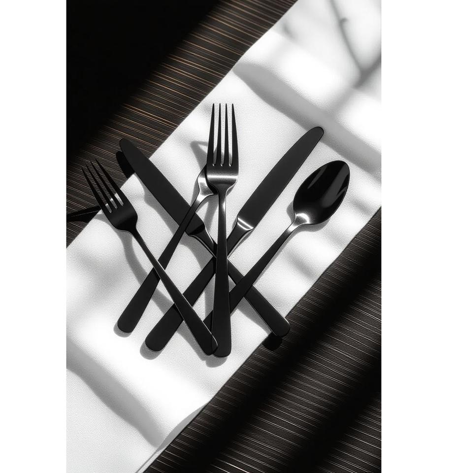 Stainless steel cutlery set black finished, crafted with golden perfection tableware that defines prestige