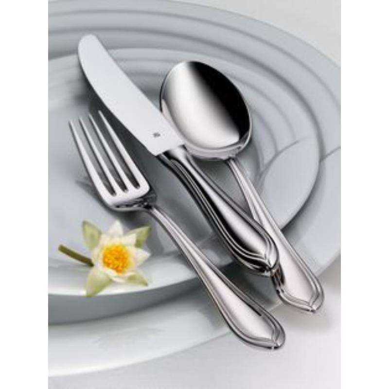 Stainless steel cutlery set with acrylic stand holder for organised storage and easy access on kitchen counter