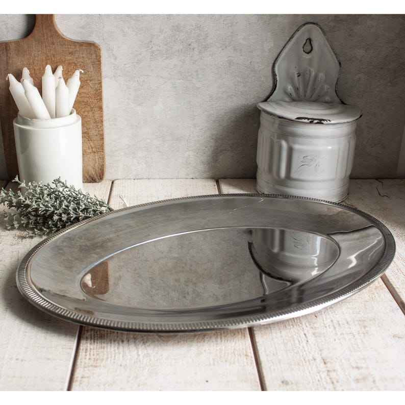 Stainless steel serving tray in large size with heavy duty build great for serving multiple dishes at once in parties