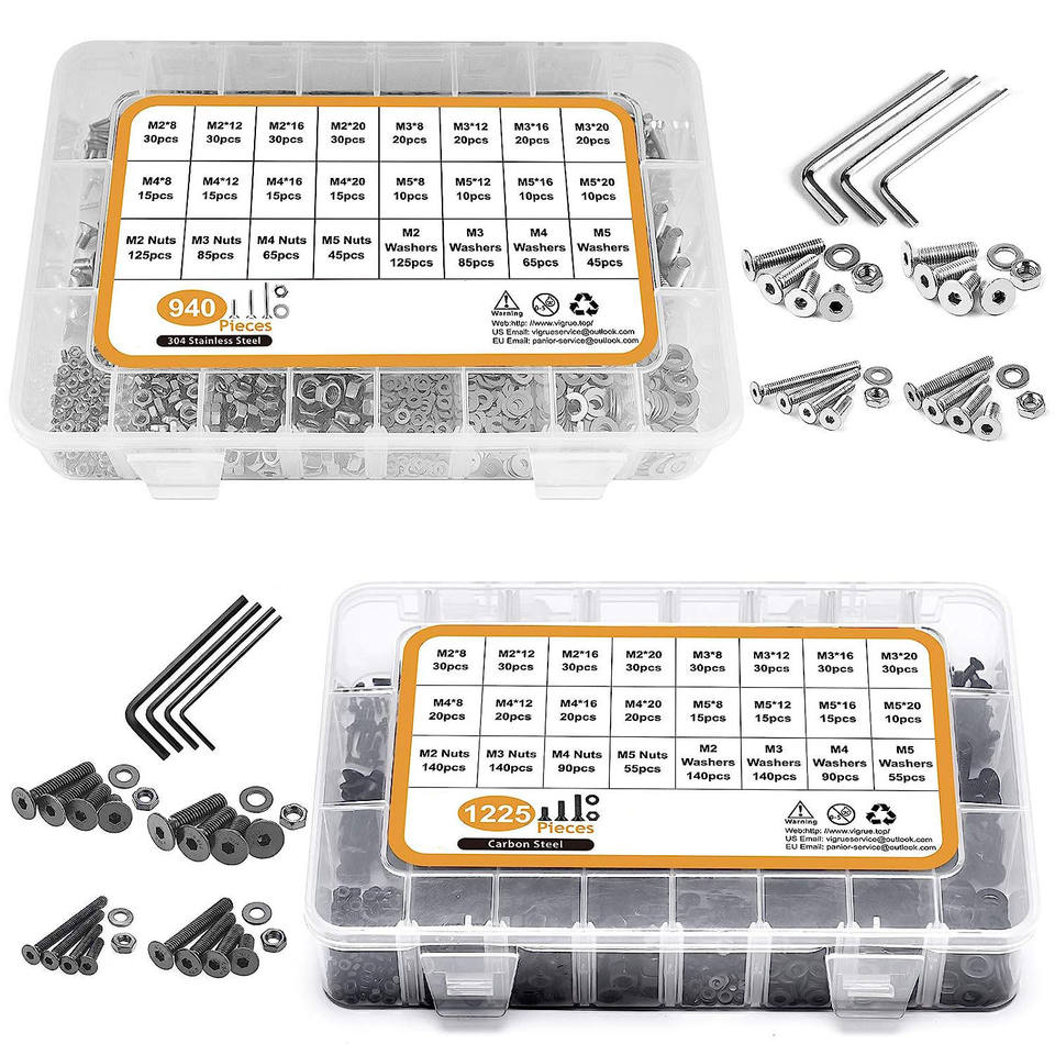 StainlessHexagon Socket Bolt Washers Nuts Assortment Kit Machine Screws Set Stainless Steel