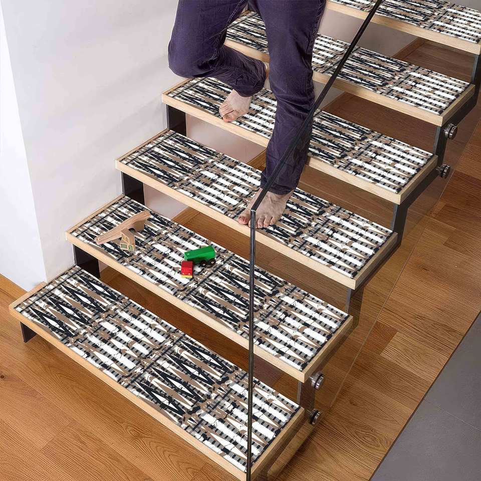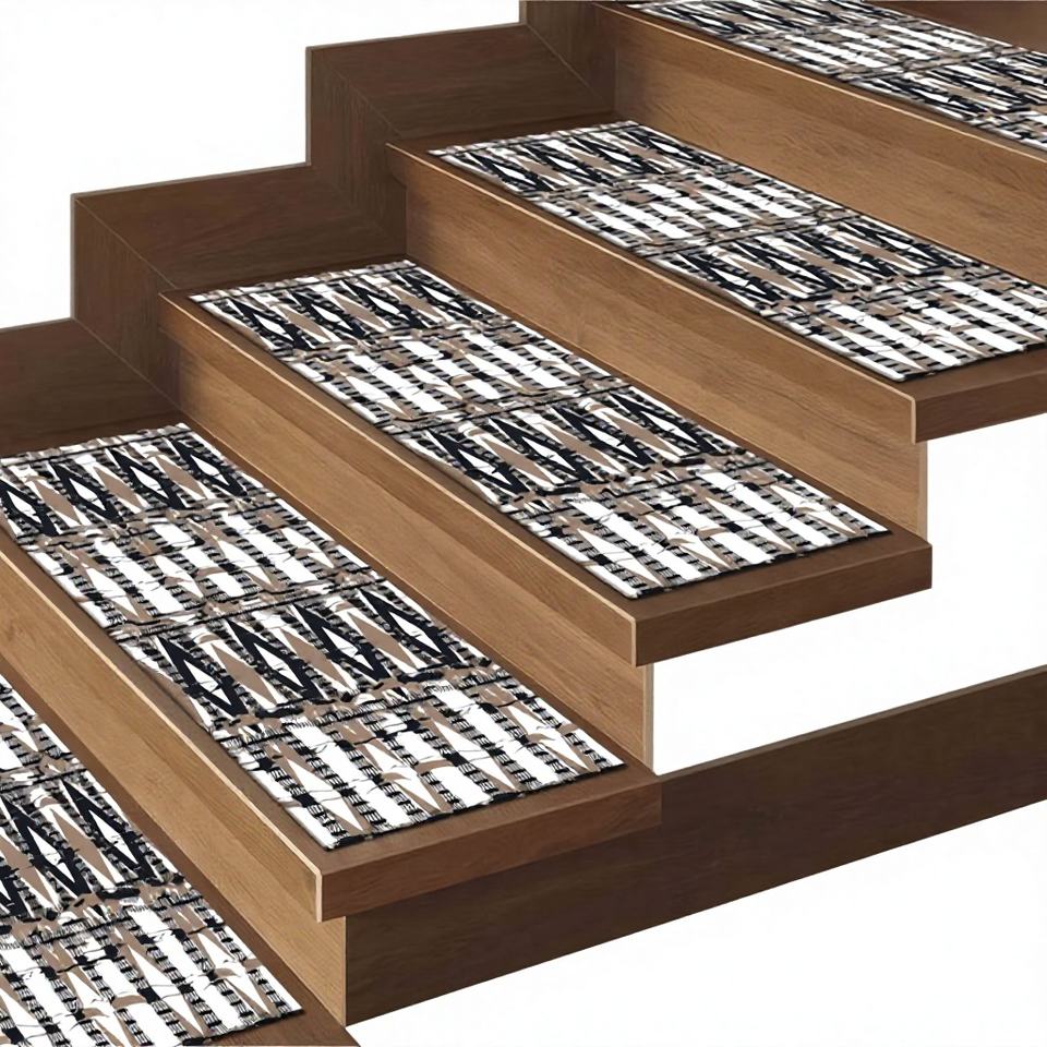 Stair Step Rug Brown Rug Traditional Rug Printed Rug Patchwork Wool Rug with Latex Backing