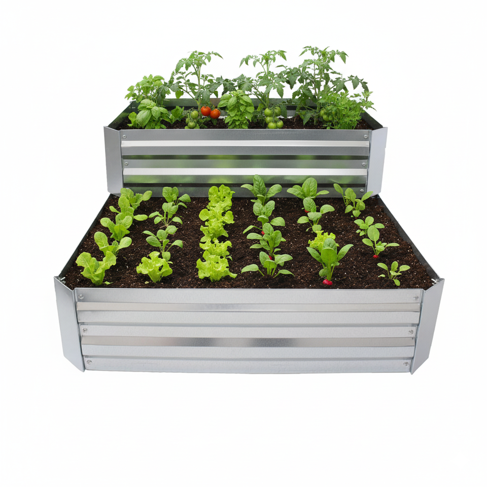 Stair-Style Steel Raised Garden Bed, Metal Planter Box Tiered Garden Bed for Vegetables, Home & Garden Decor, Wholesale Products