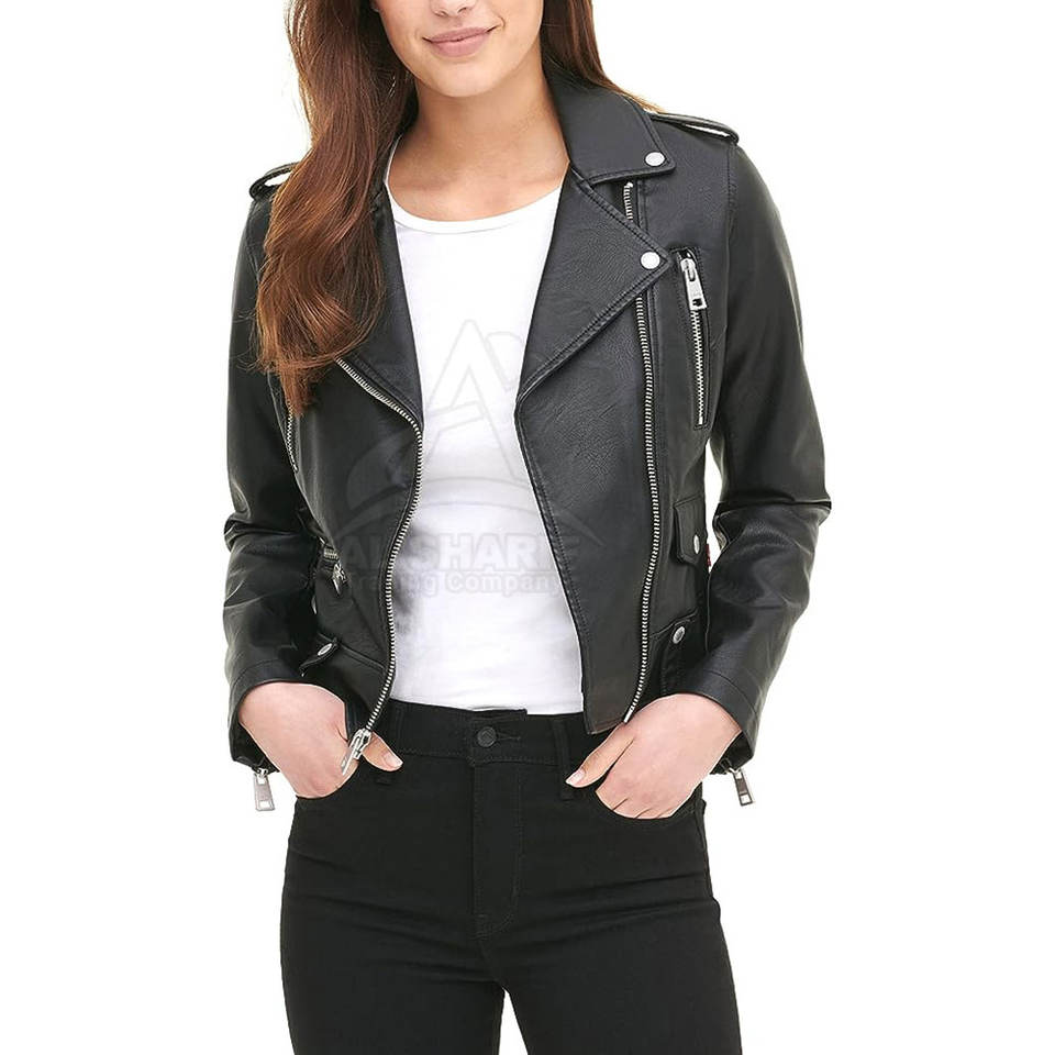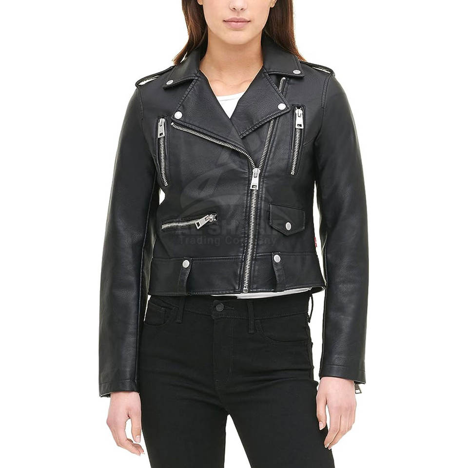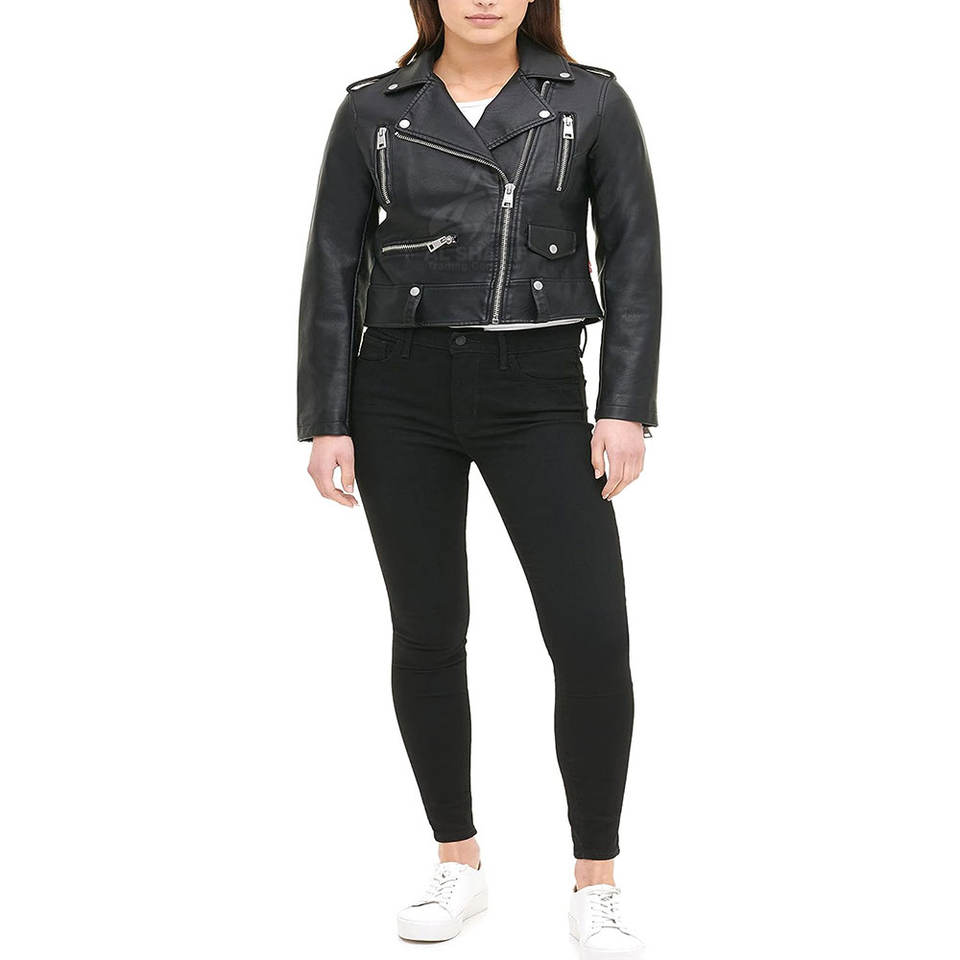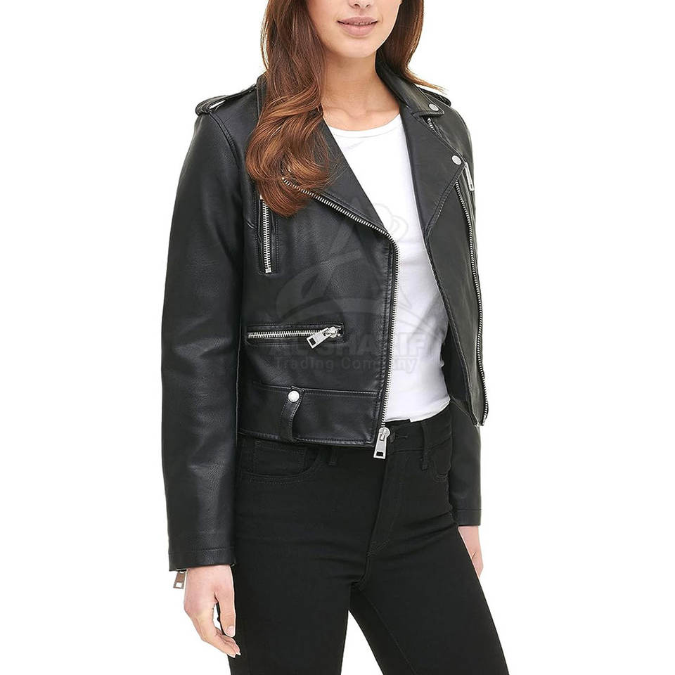 Stand Collar Solid Color Leather Jacket Large Leather Jacket Women Jacket for Sale