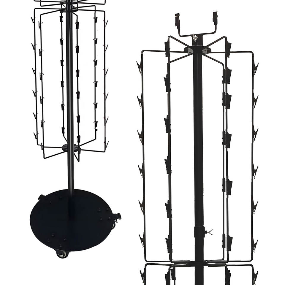 Free Standing Spinner Retail Display Rack with 72 Clips