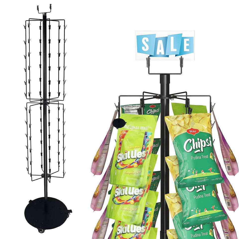 Stand Snack Retail Display Rack With 72 Clips