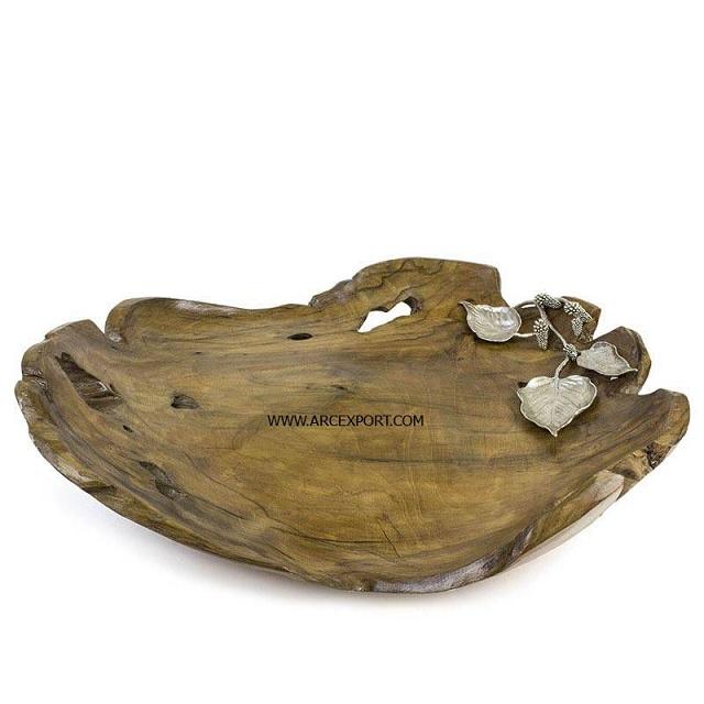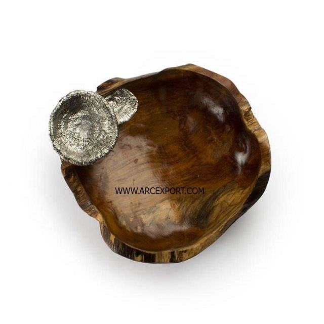 Standard Latest Design Dark Brown Color Luxury Serving Bowl Antique Shape With Designer Handle Wooden Bowl Table Decoration Bowl