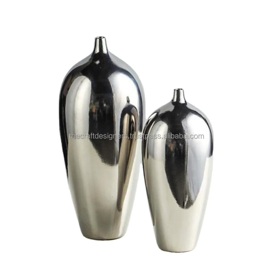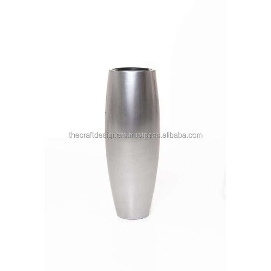 Standard Quality Flower Vase 2 Piece Set Cyclindrical Shape Wholesale Floor Flower Vase and Big Silver Pots for Interior Decors