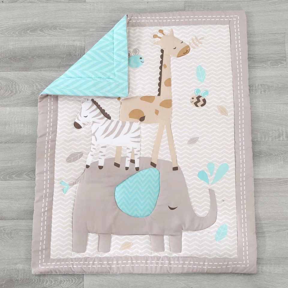 Standard Size 3-Piece Elephant Baby Crib Bedding Set Newborn& Infant Nursery Bedding Set with Comforter Fitted Sheet Crib Skirt