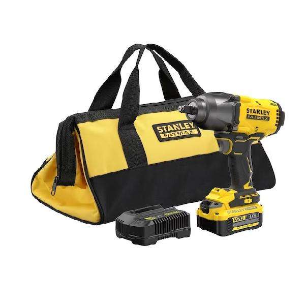 Stanley 18V 4.0 Ah 1/2'' Brushless High Power Impact Wrench Includes Battery Charger Bag