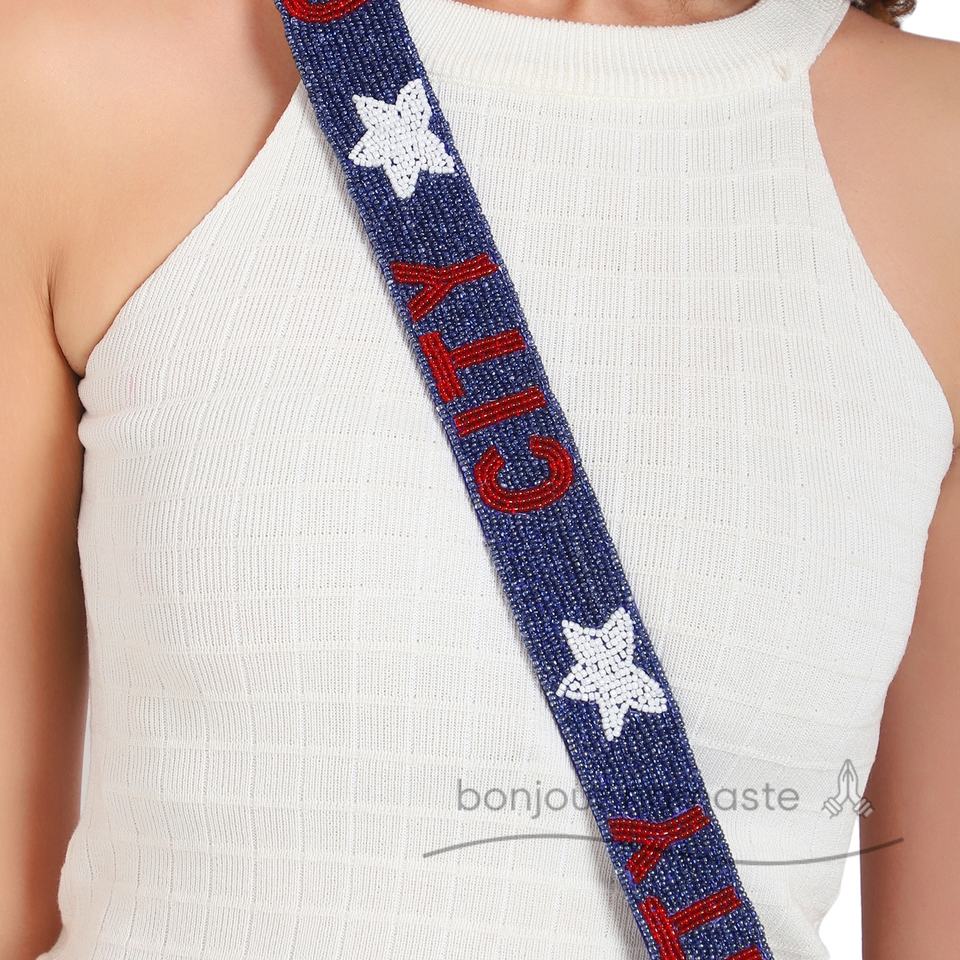 Star City Luxury Beaded Purse Strap | Adjustable Shoulder Strap for Handbags Totes Crossbody Bags | Cotton Poplin & Satin