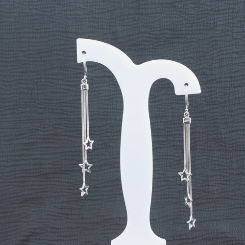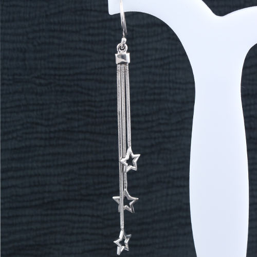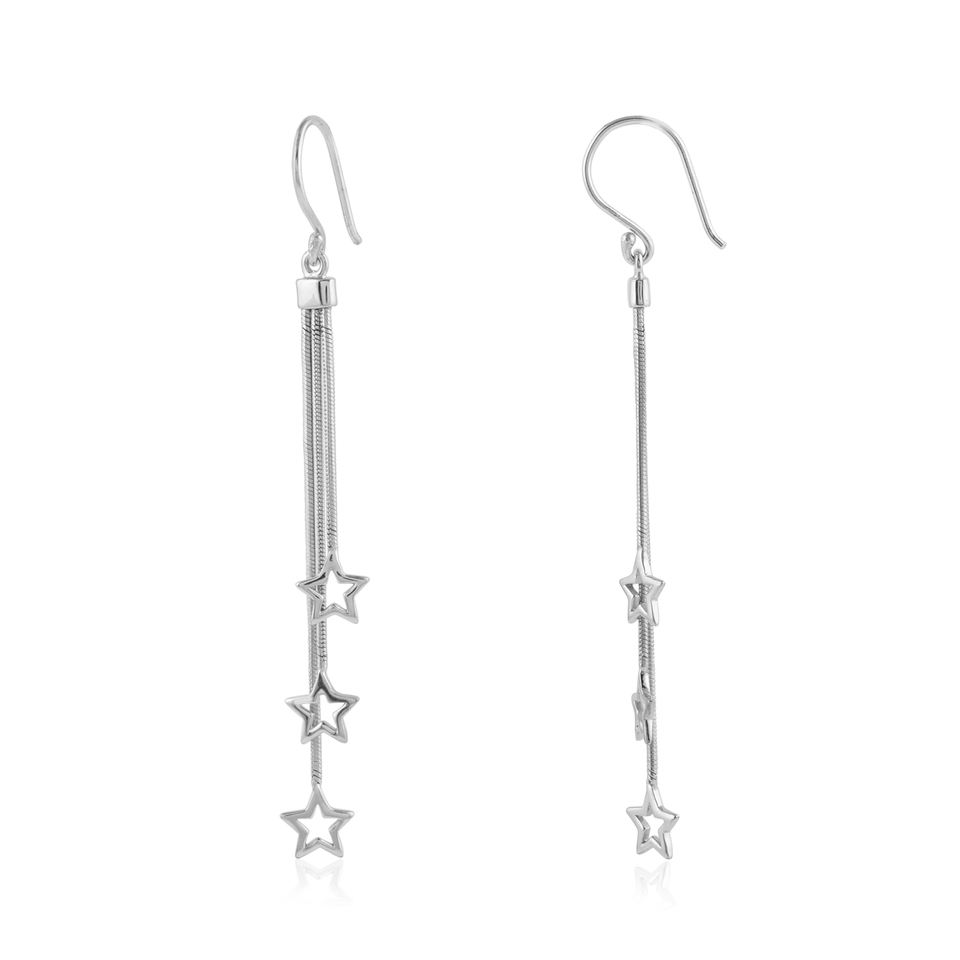 Star Drop Chain Earring Long Fringe Five Pointed Star Huggie Sterling Silver Women's Party Wedding Jewellery