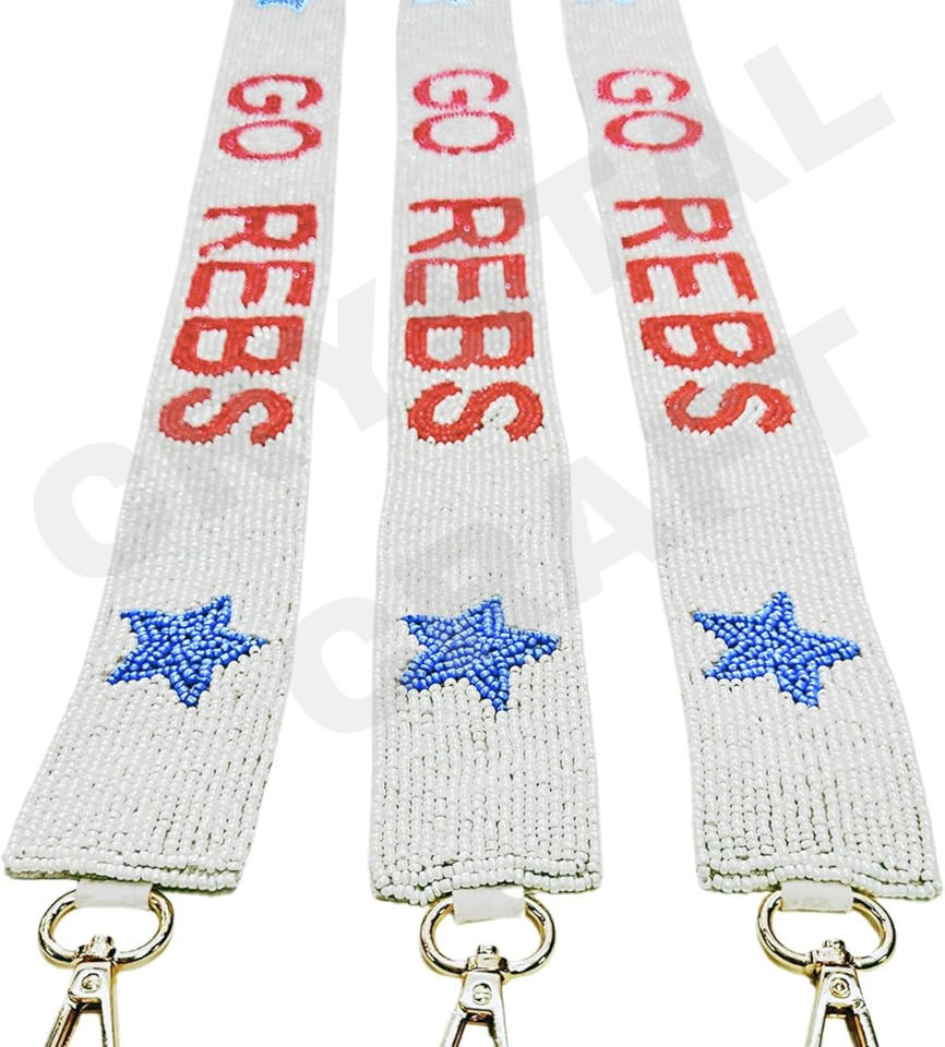Star Go Rebs Customized White Gold Seed Bead Bag Straps 'Hook Em Horns' Fashionable Accessory Beaded Purse Strap