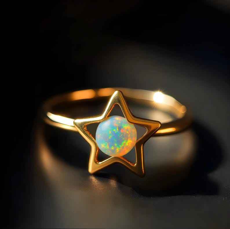 Product name:Star Opal Ring White Fire Opal Adjustable Ring