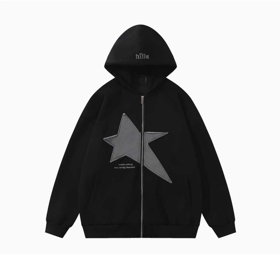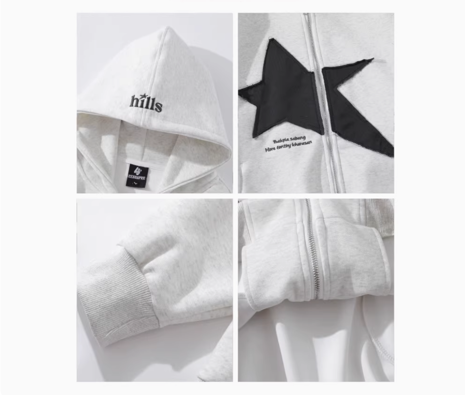 Star Patch Cloth Retro Cardigan Hoodie Men's Fashion Brand Loose Simple Heavy Hoodie Coat