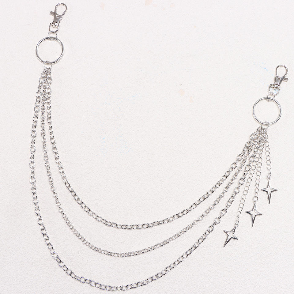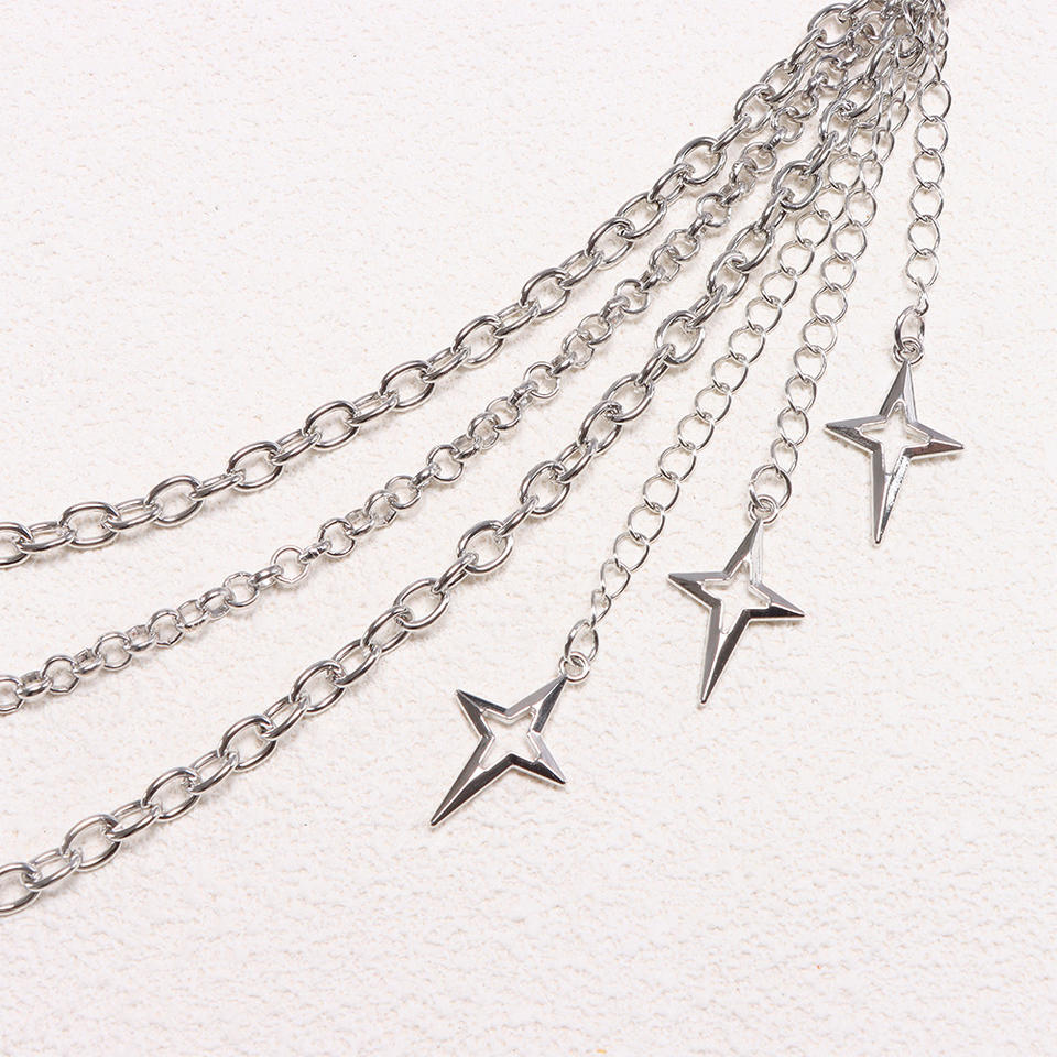 Star Pattern Multi Layered Waist Chain Zinc Alloy Punk Style Hip Hop Fashion Body Chain Daily Wear White K