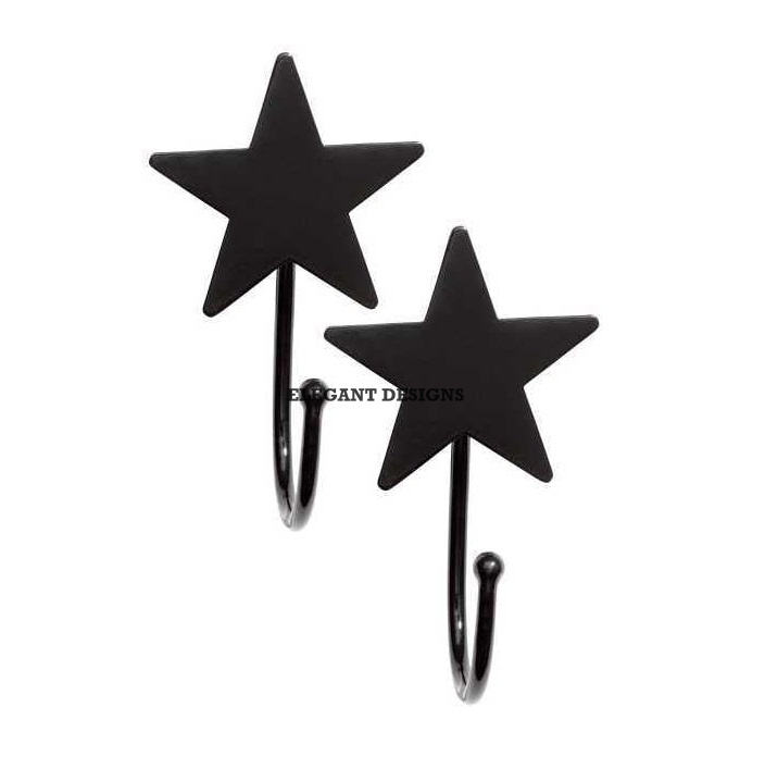 Star Shape Metal Wall Hooks Set of Two Black Powder Coated Different Sizes Very High Quality Classic Style Metal Wall Hooks