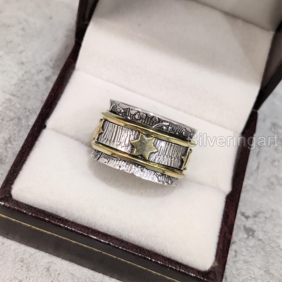 Star Spinner Band Meditation Ring 925 Sterling Silver Women's Thumb Ring Fidget Handmade Jewelry Fine Anxiety Mens Spinner Ring