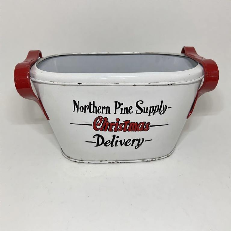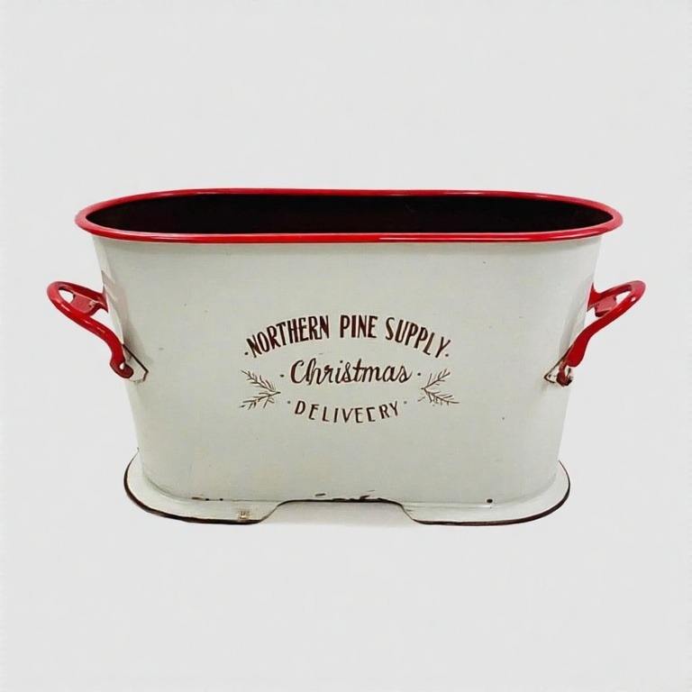 Starlight Noel Garden Planter Crafted from Metal for Christmas Poinsettia Displays Pine Garland and Porch Decorations