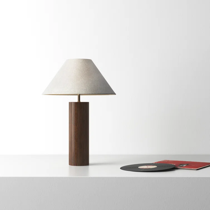 Starr Solid Wood Table Lamp Modern Desk Lamp Solid Walnut Wood Body with Fabric Shade Handcrafted Table Lamp