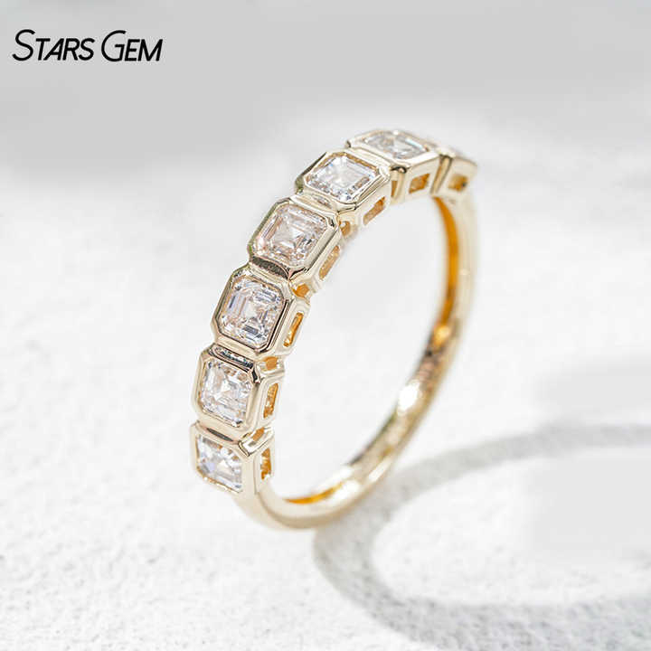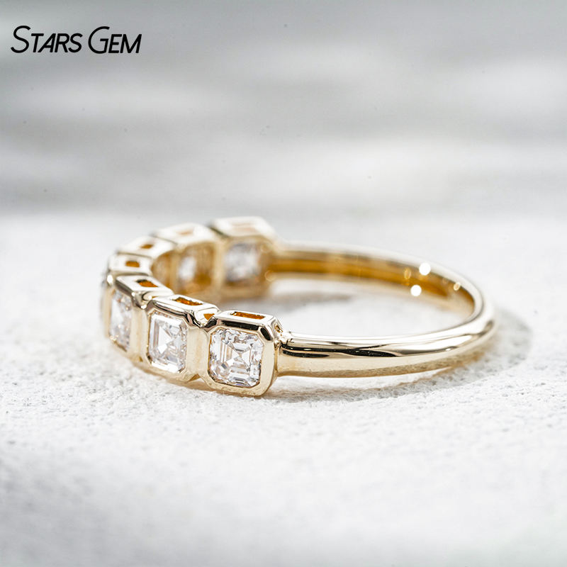 StarsGem 14K Solid Gold 1.25CTW Lab Grown Diamond Asscher Cut Eternity Ring Bezel Setting Rhodium Plated Vintage Classic Design