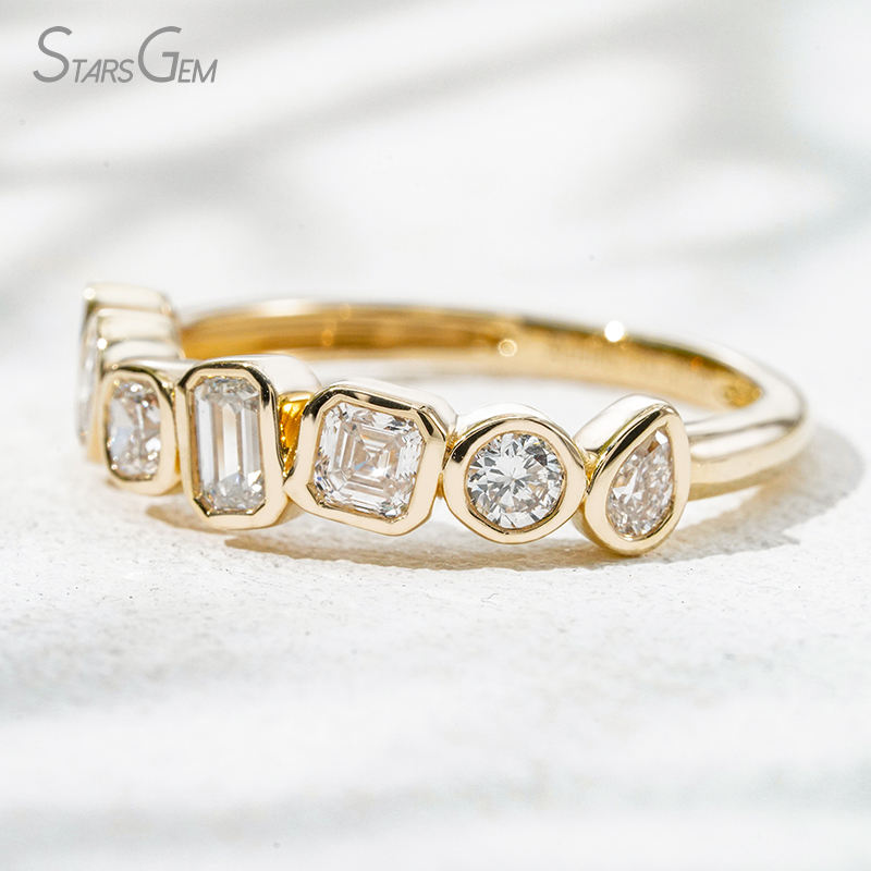 StarsGem 14K Solid Gold DEF VS Lab Grown Diamond Fancy Shape Eternity Wedding Band Bezel Setting Fine Jewelry