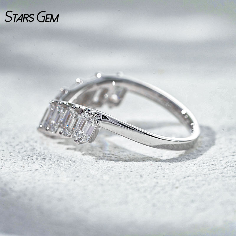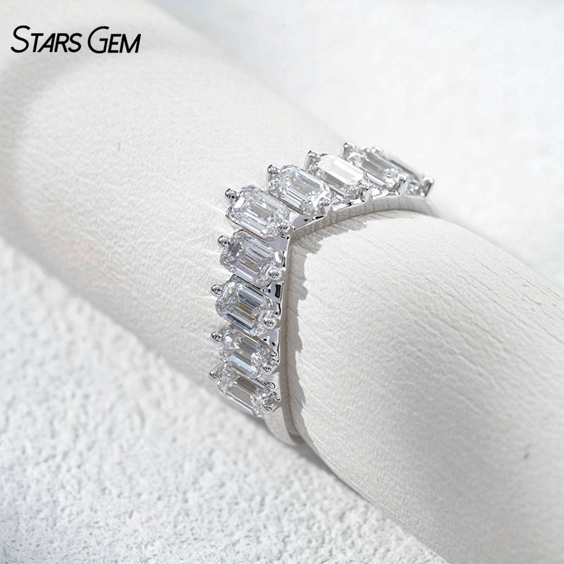 StarsGem 18K Solid Gold Rhodium Plated Vintage 1.65CTW DEF VS Lab Grown Diamond Emerald Cut Stackable Wedding Band Gift