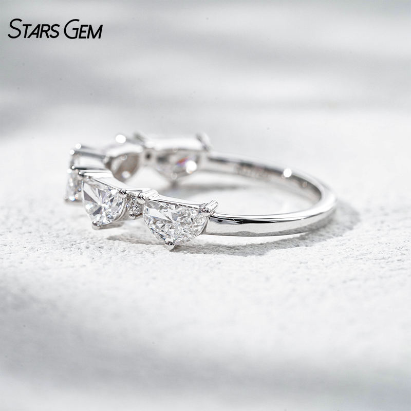 StarsGem 18K Solid Gold Vintage Rhodium Plated 1.08CTW E VS Lab Grown Diamond Half Moon Cut Wedding Band Stackable Ring for Gift
