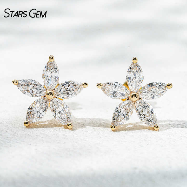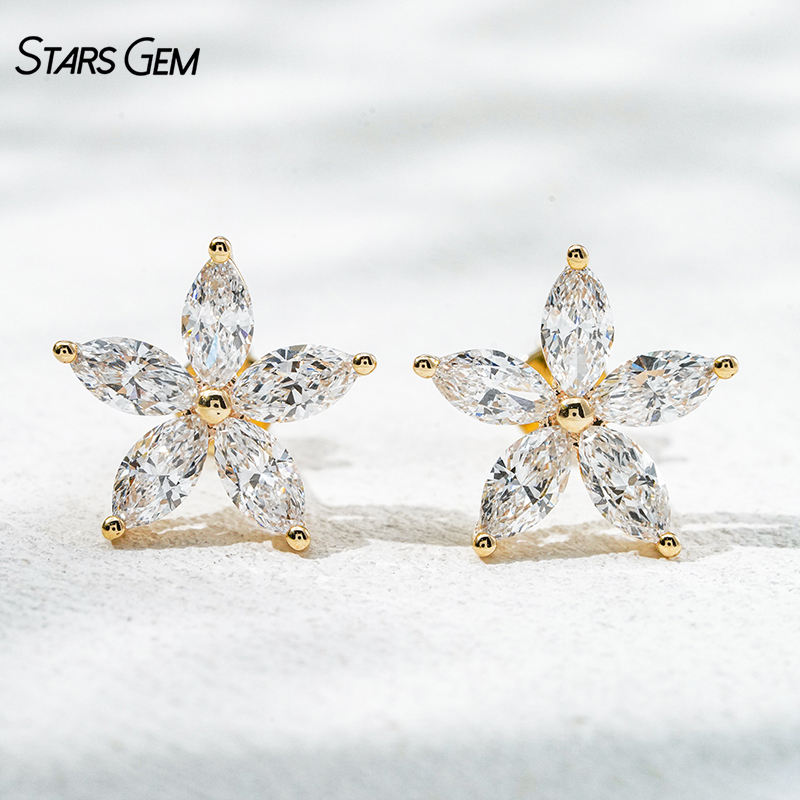 Starsgem 0.6ct 1.99ct 2*4mm 3*6mm Marquise Cut DEF VS Lab Grown Diamond 10K Yellow White Solid Gold Trendy Flowers Stud Earring