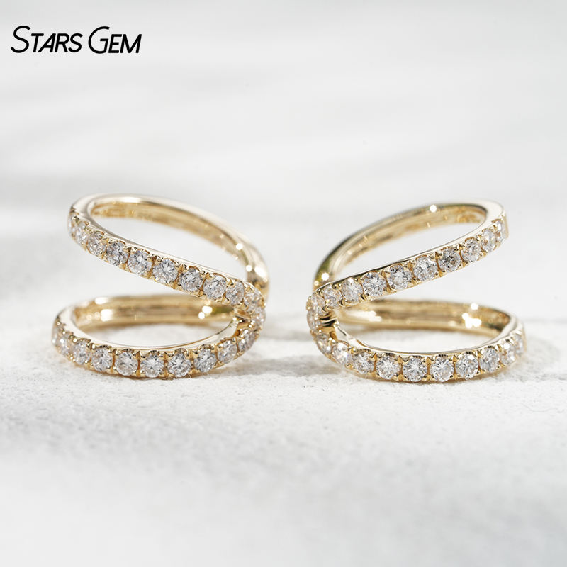 Starsgem 10K Solid Gold Lab Grown Diamond Wedding Ear Clip & Cuff Earrings 1.4mm 0.25ct Unisex Trendy