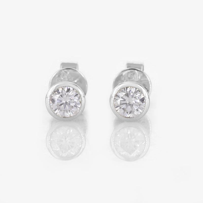 Starsgem Hot Sale Design Round Lab Diamond Bezel Setting 9K 10K 14K 18K Gold Stud Earrings