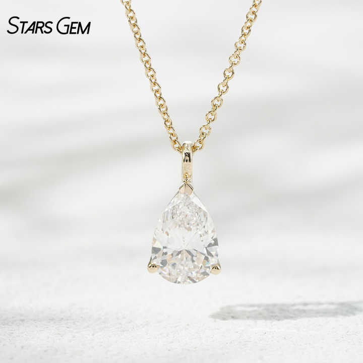 Starsgem IGI Certified Lab Grown Diamond Filled Necklace 1.06ct Pear Shape D Color VS 18K Solid Gold Vintage Fine Jewelry Women