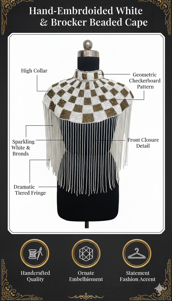 Ellora Statement Beaded Capelet Hanging Fringe Banquet Party Wedding Stage Costume Evening Wear Fashion Item Nylon Fabric