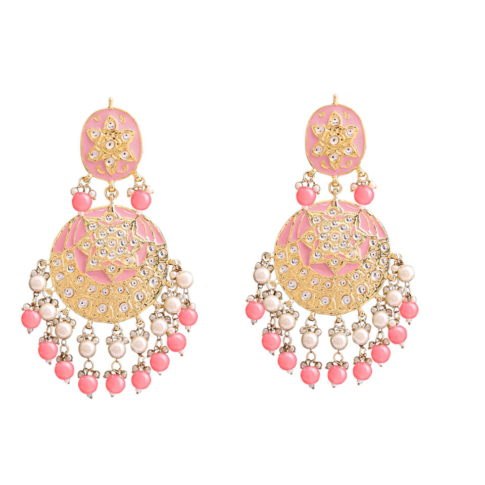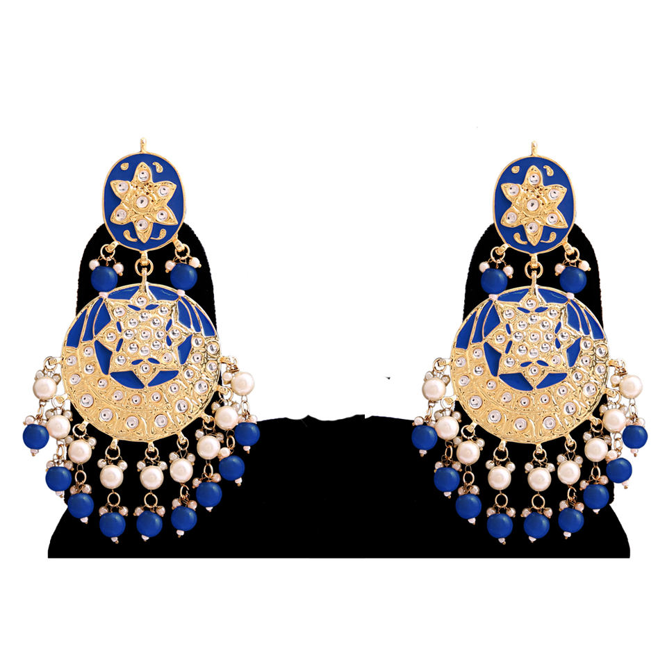 Ethnic Statement Chandelier Earrings Bead Embellishment Durable Alloy Base Designed Party Wear Bridal Outfit Women Jewelry