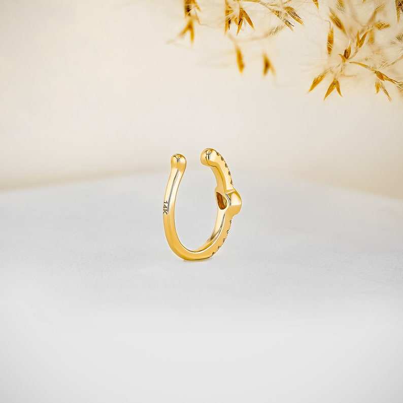 Statement Jewelry Single (Half Pair) Diamond Ear Cuff Teardrop Center Illusion Non-Pierced 14k Pure Gold & Diamond Earring Cuffs