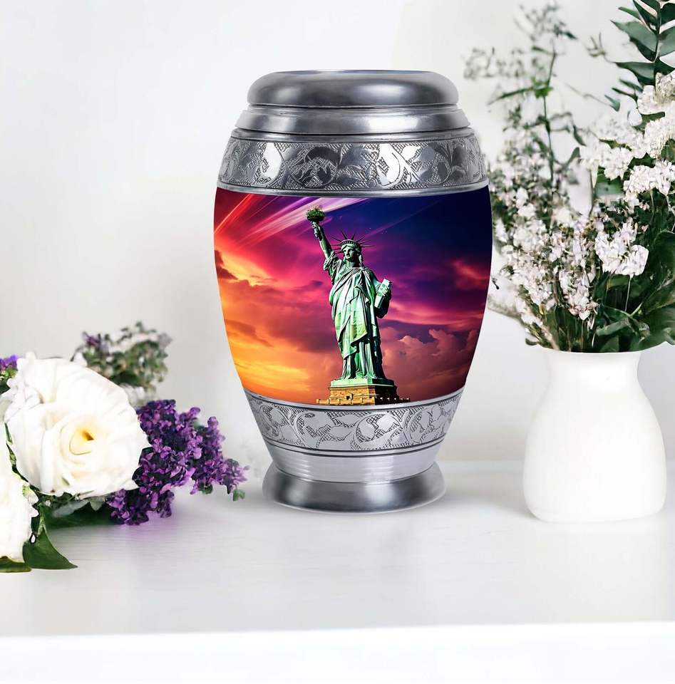 Statue of Liberty American Style Cremation Urn & Keepsake Unique Engraved Monarch Design Funeral Memorial Ashes Decorative Urns