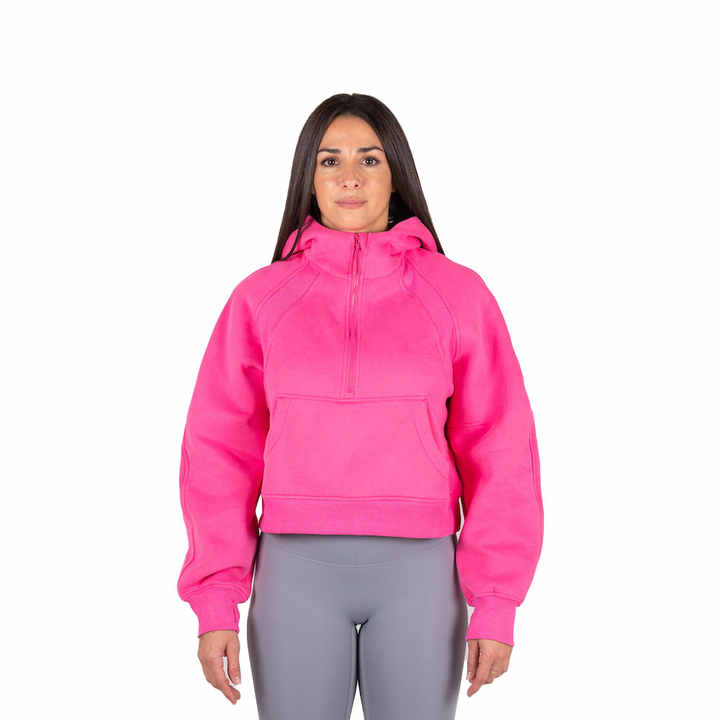 Product name:Turtleneck Zipper Up Short Pink Hoodie Jacket
