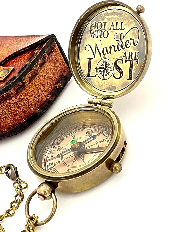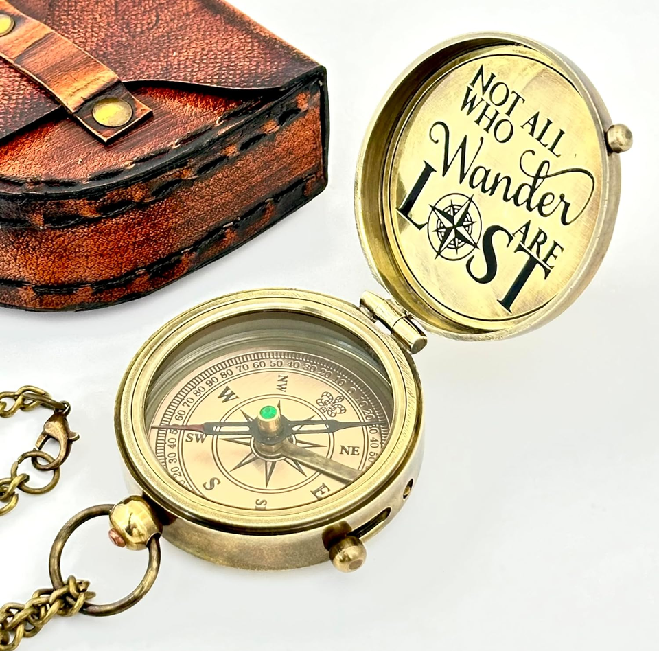Steampunk Accessory Men's Gift Unique Brass Compass Pocket Nautical Compass with Leather for Men Great for Navigation Style