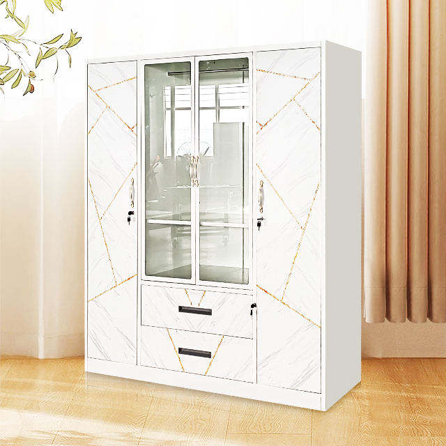 Product name:High Quality Double Door Printed Steel Wardrobe with Drawers