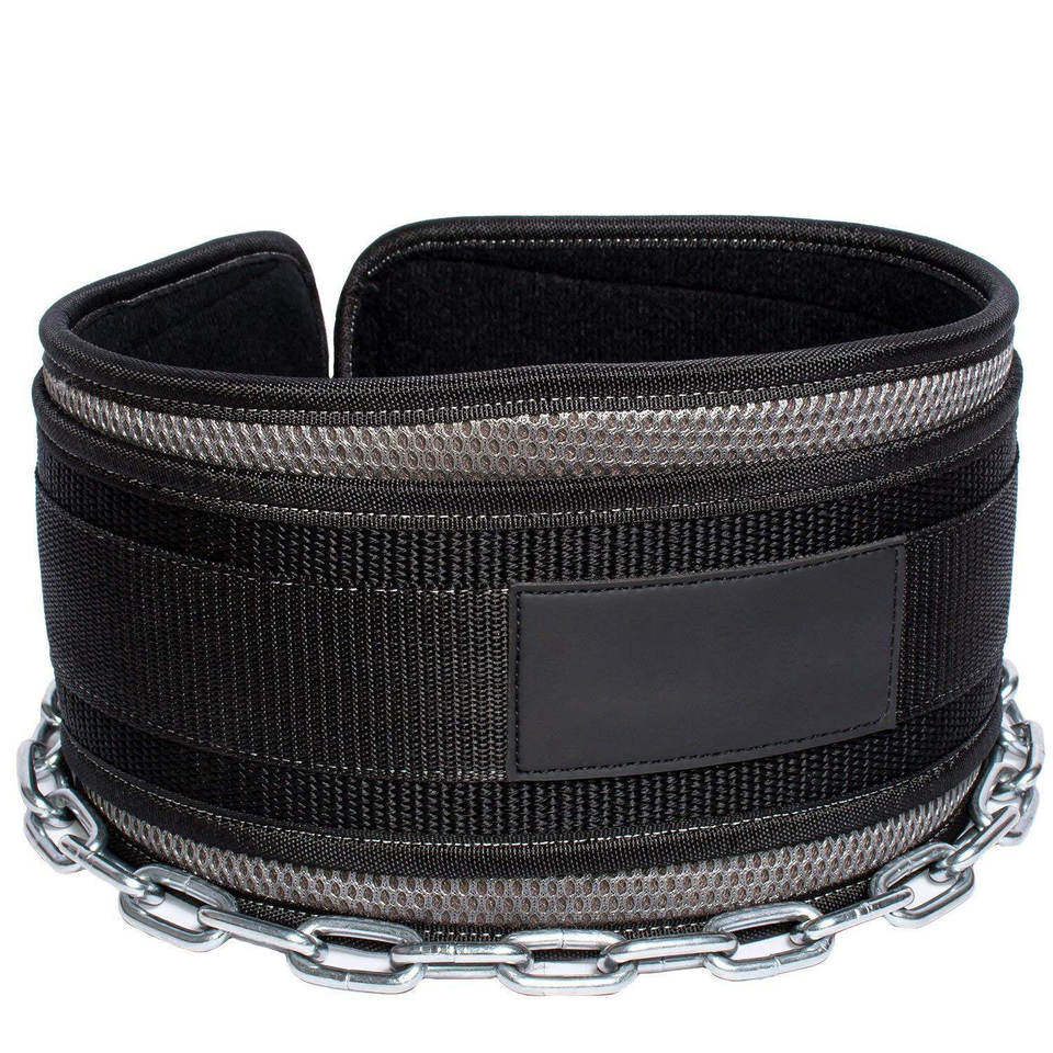 Steel Chained Neoprene Dip Belt Weighted Training Back Support Black & Red Weight Lifting Dipping Belt Strong